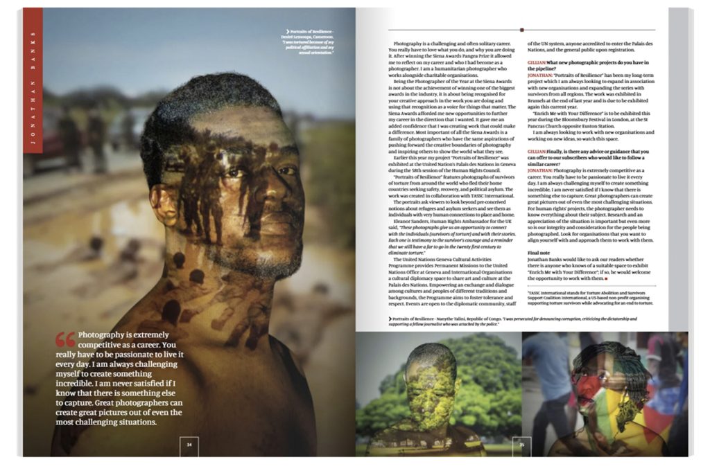 JONATHAN: “Portraits of Resilience” has been my long-term project which I am always looking to expand in association with new organisations and expanding the series with survivors from all regions. The work was exhibited in Brussels at the end of last year and is due to be exhibited again this current year.
